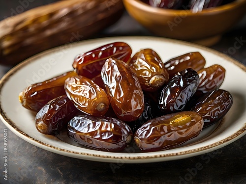 dates close up. date palm background. Date palm on a traditional craftsman market.Horizontal image.