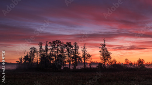 Dawn over the meadow near Piaseczno, Masovia, Poland