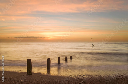 Dawn view from the shore of Teignmouth, Devon, Great Britain; Teignmouth, Devon, England