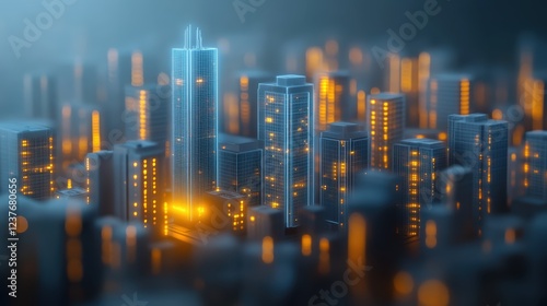Dazzling cityscape at night, illuminated skyscrapers and vibrant urban lights