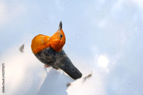 Dead birds on the ground becausefly into theglass. Orange-headed Thrush.