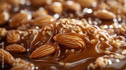 Decadent Caramel Drizzle Enveloping Almond Cluster in Glistening Opulence