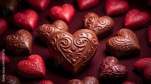 Decadent dark and ruby chocolate hearts, exquisitely crafted with intricate designs. A perfect Valentine's Day treat!