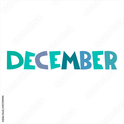 December monthly logo. Hand-lettered text on white background. Isolated design element. Header, banner in bold hand-drawn letters