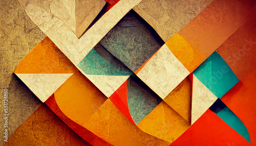 Deconstructed postmodern inspired artwork of vector abstract symbols with bold geometric shapes