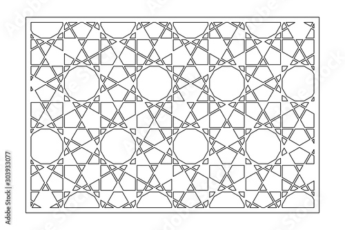 Decorative card for cutting. Arab linear geometric mosaic pattern. Laser cut. Ratio 3:2. Vector illustration.