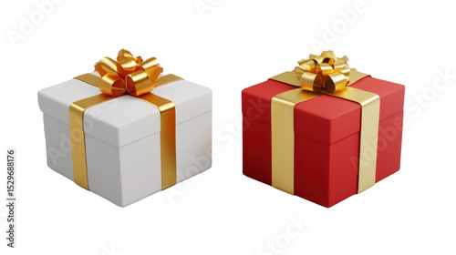 Decorative Christmas gift box with festive wrapping and ribbon isolated on white background