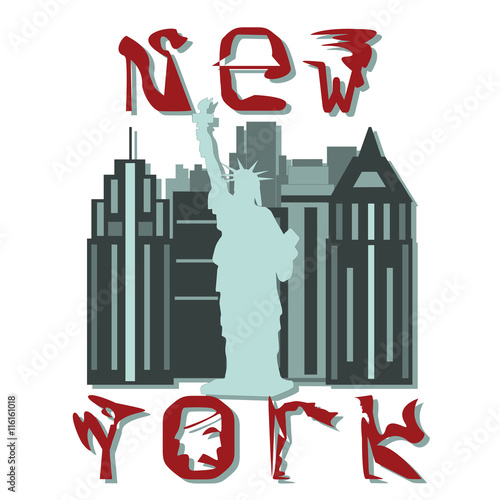 decorative letters NY Statue of Liberty isolated abstract drawing vector white background