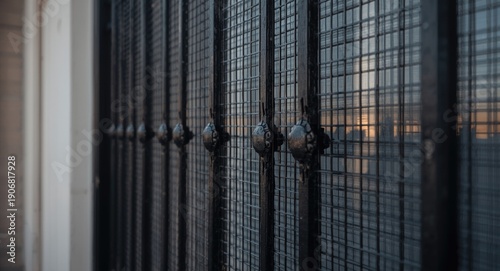 Decorative mesh window grill close up showing safety details and spacious area for text or logo