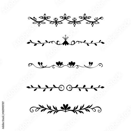 Decorative simple divider. Text dividers retro minimal line separators, Vector isolated geometric wedding card heart separator elements set. Text dividers. . Hand drawn vector illustration.