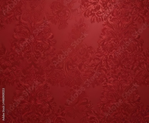 Deep crimson damask, luxurious embossed texture, subtle sheen , interior design, deep