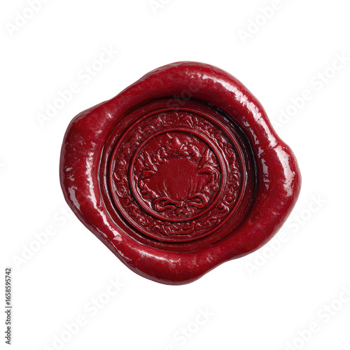 Deep crimson wax seal, intricate design
