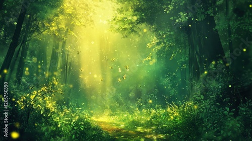 Deep emerald bokeh blending into subtle lime greens, natural forest-inspired ambiance