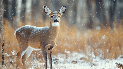 Deer in winter snow forest scene wildlife animal photography nature background winter wonderland landscape image