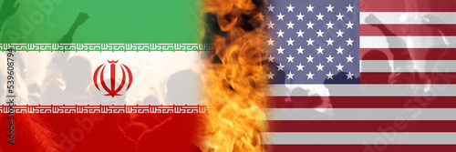 Defocus of flag background, Iran and USA relationship in crisis, America relations with Iran. War Russia. Flags revolution. Out of focus