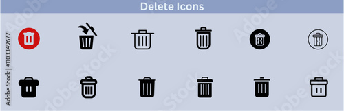 Delete icon set. delete button trash remove cancel undo throw remove editable stroke line icon collection.