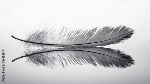 Delicate black feathers resting on a reflective surface create a tranquil and minimalist aesthetic