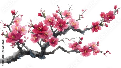 Delicate Blossom Illustration Capturing the Essence of Beauty and Tranquility in Soft Pink and Red Hues