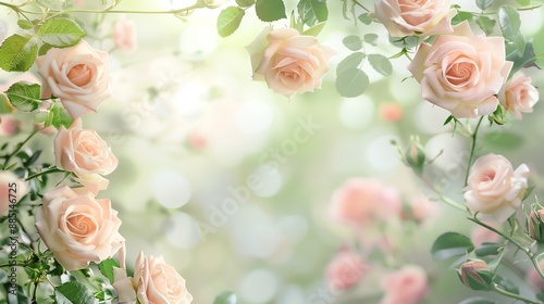 Delicate Peach Roses in Bloom.