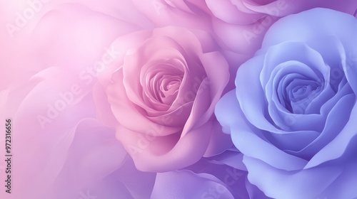 Delicate pink and lavender roses create a soft, ethereal floral background.