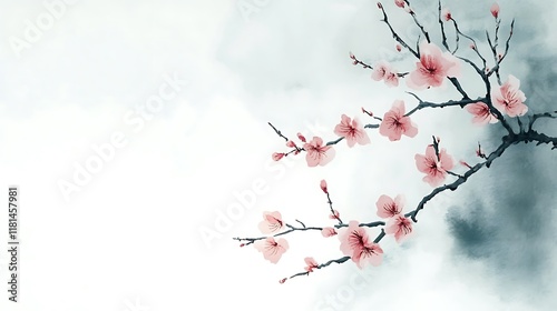 Delicate Pink Blossoms Branching Out Against Soft Hues