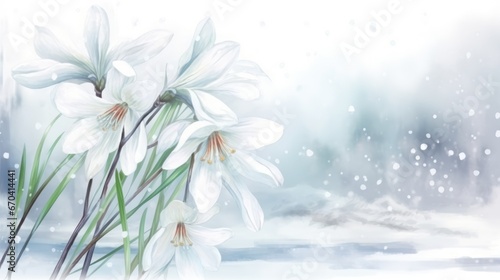 Delicate Snowdrop Flower in forest Background. Hello first Spring easter flowers. White Snowfall Beautiful blooming snowdrop flowers. for postcards, posters and wallpapers.