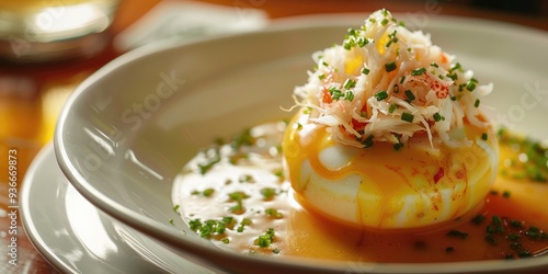 Delicate Steamed Egg Garnished with Crab Meat at an Upscale Restaurant