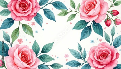 Delicate watercolor roses & leaves, repeating pattern , pastel, watercolor, elegant