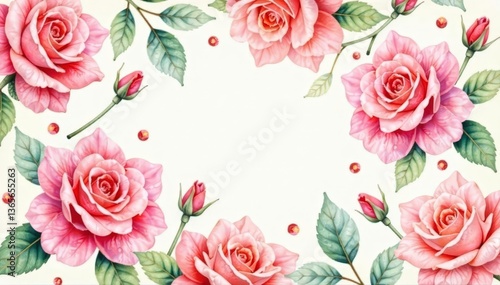 Delicate watercolor roses repeat, soft hues, vintage feel , texture, design