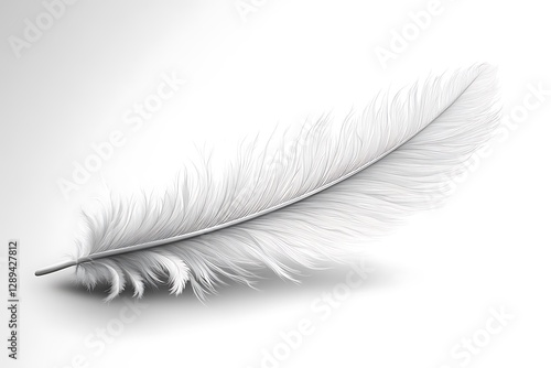 Delicate White Feather on a Simple White Background