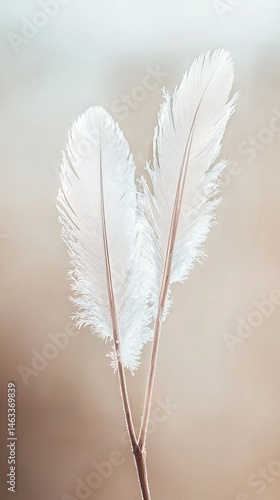 Delicate White Feathers on Soft Beige Background for Tranquil Aesthetics