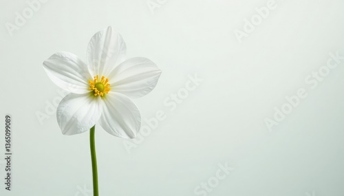 Delicate white flower, pristine petals against pure backdrop, still life, aesthetic, summer