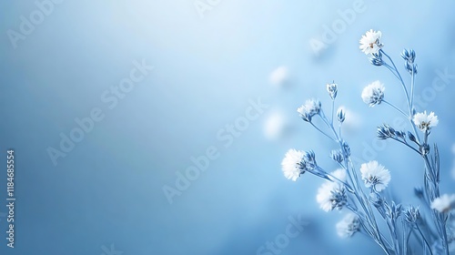 Delicate white flowers against a soft blue background