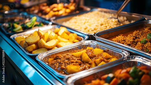 Delicious buffet with assorted dishes showcased.