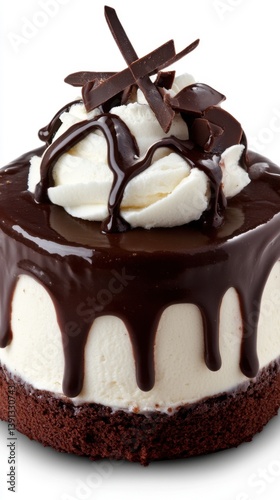 Delicious Chocolate Cake with Rich Ganache and Creamy Frosting on White Background Dessert Delight