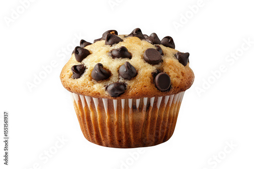 Delicious chocolate chip muffin bakery treat dessert food photography yummy baked goodness isolated on transparent background