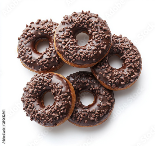 Delicious chocolate doughnuts topped with crunchy sprinkles, perfect for any sweet craving. These treats are ideal for dessert lovers and make delightful snack