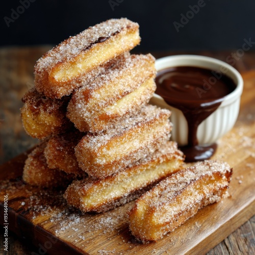 Delicious cinnamon sugar churros with chocolate dip
