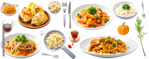Delicious Food Variety: A vibrant collage showcasing a delectable array of dishes, including pasta, chicken, rice, and more, perfect for restaurant menus, food blogs, or culinary websites.