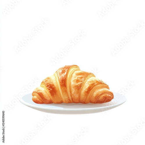 Delicious golden croissant on a white plate