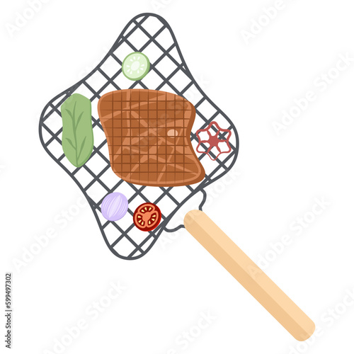Delicious Grilled Beef Smoked Roasts Steak Cooked Meat on an Iron Grill
