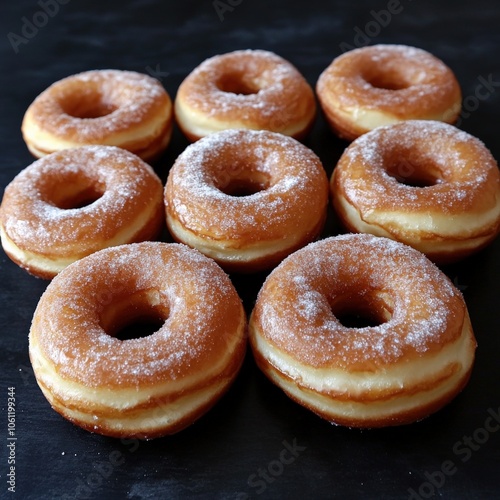 Delicious Homemade Glazed Donuts with Sugar Sprinkles on Rustic Black Background Perfect for Bakery Lovers and Sweet Treat Enthusiasts