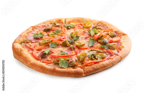 Delicious hot pizza Diablo isolated on white