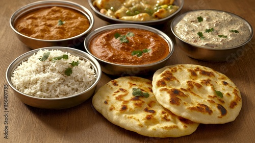 Delicious Indian Food Flatlay Naan Curry Rice and More