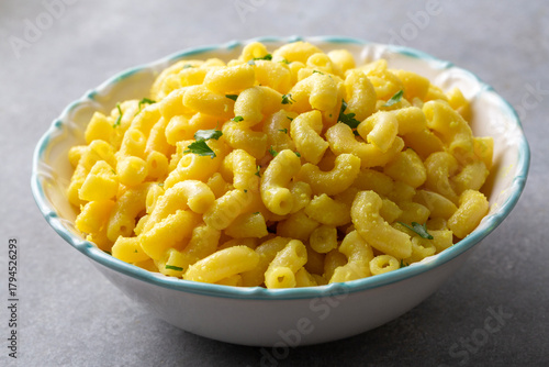 Delicious macaroni and cheese , American mac and cheese, macaroni pasta in cheesy sauce.