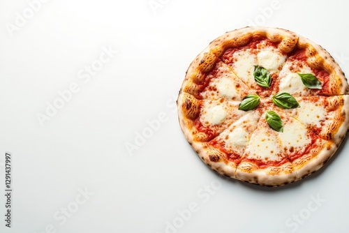 Delicious Margherita pizza with fresh basil on clean, minimalist