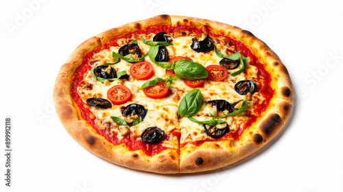Delicious Margherita Pizza with Fresh Toppings on White Background - Perfect for Food Blogs and Menus