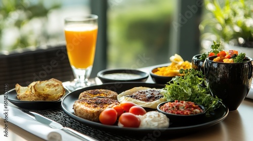 Delicious Morning Brunch with Fresh Ingredients and Juice
