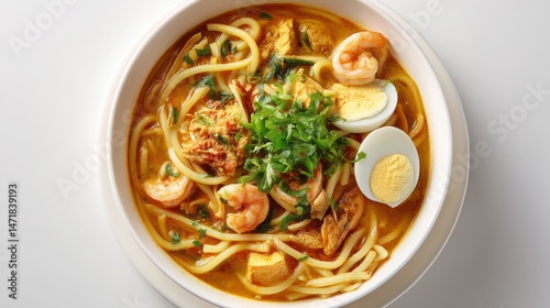 Delicious noodle dish with shrimp, egg, and vibrant vegetables