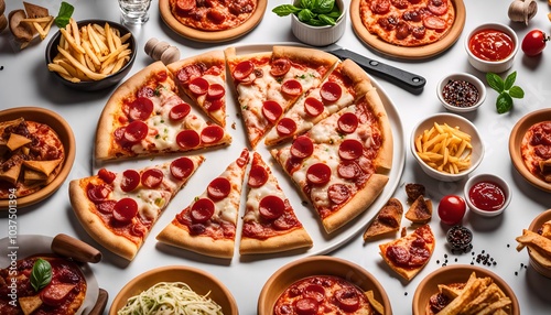 Delicious Pepperoni Pizza with Sides